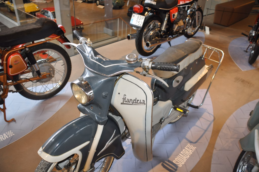 -De Vespa, Italianen zijn levensgenieters zowel in de keuken, mode of design. Altijd is er een extra vleugje charme. Dit uit zich ook in auto’s en motoren. Ze vonden inspiratie in de natuur: vaak merken en modellen met namen uit het dierenrijk. Vespa: de wesp, Piaggio Ape: de bij, Moto Guzzi Falcone; de valk. De Piaggio Ape kan je hier ook zien, een uniek exemplaar op zijn drie wielen, ze komt van de Riga winkel in Antwerpen, die toen gespecialiseerd was in valiezen. Het wagentje kon snel leveren in de smalle straatjes.