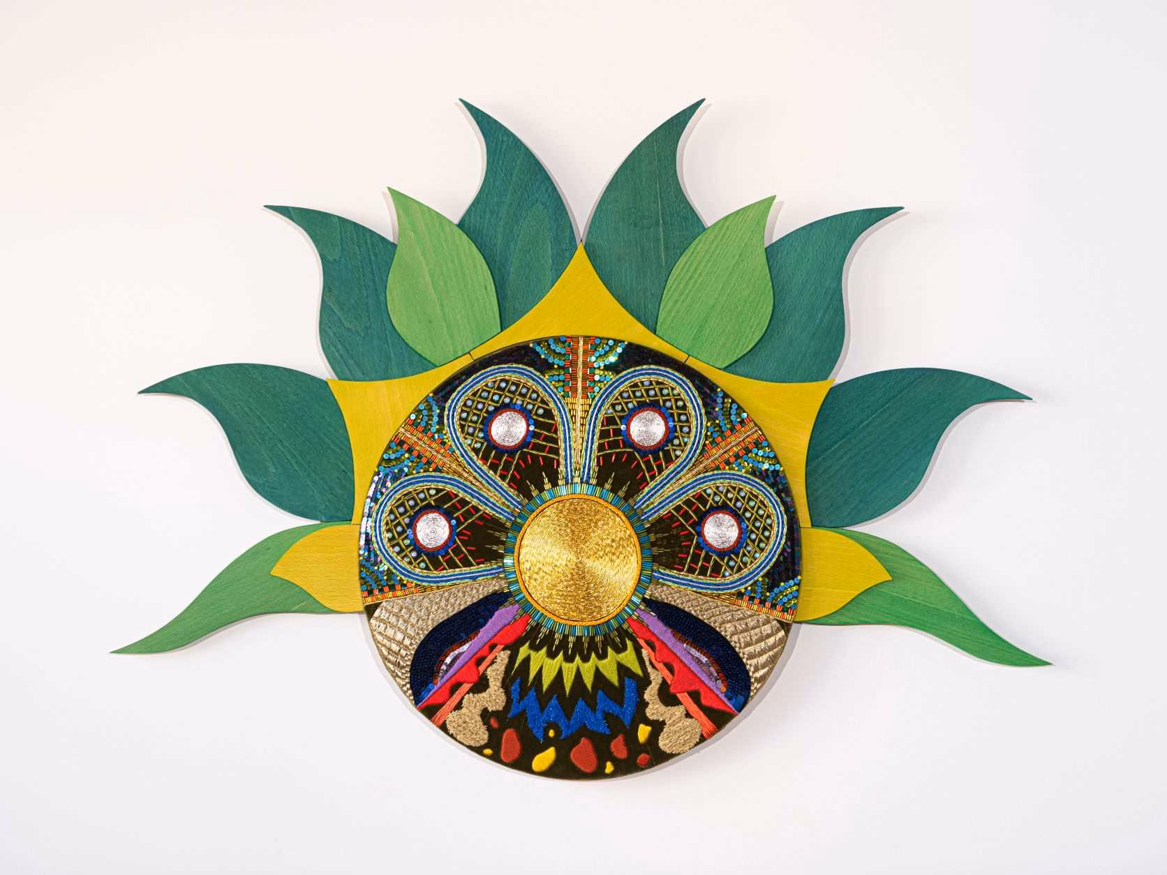 De werken in textiel werden geborduurd met glinsterende garen, kralen en bontgekleurde pailletten. Ze stellen de instrumenten van de tovenaar voor. Eén van deze instrumenten — de photosynthesizer — produceert mystieke klanken, die hij in een denkbeeldig ritueel doorheen het kleurrijke universum laat zinderen. Voor dit instrument creëerde Verlinden een reeks bijzondere partituren in draad en potlood op handgeschept papier. De partituren komen tot leven in een soundscape die Verlinden samen met geluidskunstenaar Anouk Kellner realiseerde.