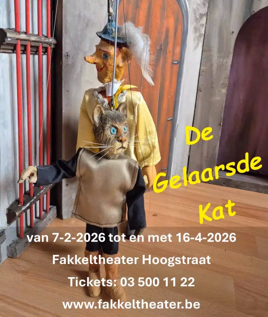 Vanaf zaterdagnamiddag 7-2-2026 starten de voorstellingen van Stangpoppentheater Klein maar Moedig met “De Gelaarsde Kat”