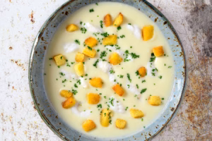 Knolseldersoep met pladijsreepjes