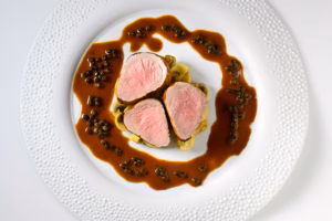Varkensmedaillon met champignons, peperroomsaus en aardappeltjes