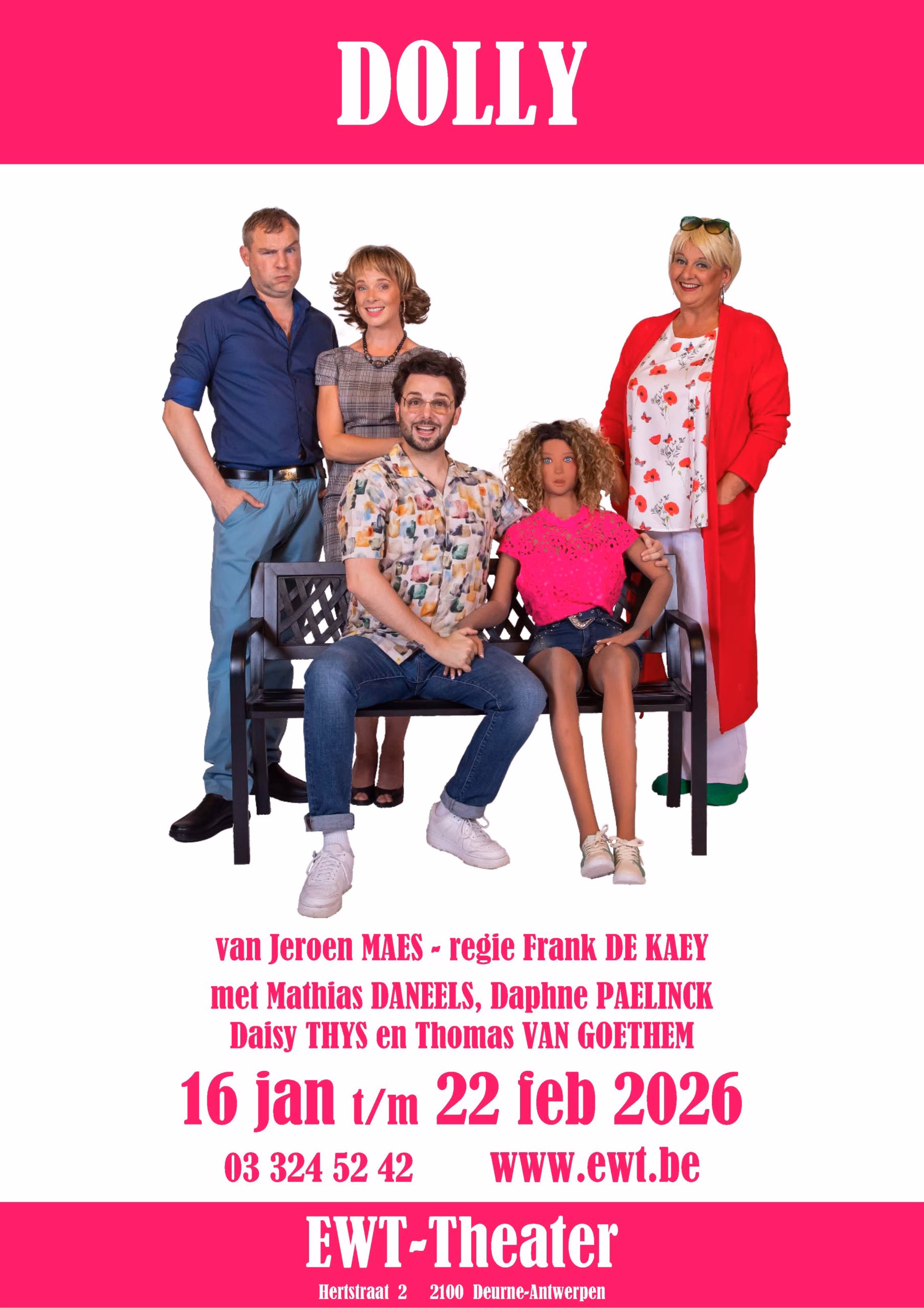 Met Dolly’ geeft EWT Theater hun derde  productie in hun theater van Deurne. Vanaf 12 januari 2026 tot en met 22 februari 2026 speelt dit stuk van Jeroen Maes in een regie van Frank De Kaey.
