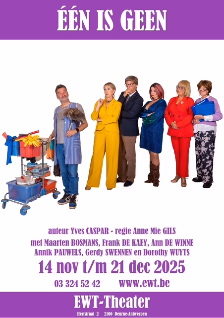 Met ‘Een is geen’ geeft EWT Theater hun tweede  productie in hun theater van Deurne. Vanaf 14 november 2025 tot en met 21 december 2025 speelt dit stuk van Peter Kremel in een regie van Frank De Kaey.