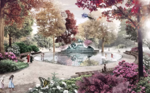 Districtsschepen voor parken Ludo Van Campenhout: “Het hoefijzervormige pad rondom de spiegelvijver wordt uitgevoerd in mozaïekkeien uit hergebruik van de aanwezige verharding. Het ontwerp voorziet in een circulaire wateropvang, zodat het water van de spiegelvijver opnieuw gebruikt wordt. Op het vernieuwde plein komen ook comfortabele zitbanken. De groene buffer tussen het inkomplein en het drukke kruispunt van de Rubenslei met de Van Eycklei scheidt het Stadspark visueel en mentaal van de straat. Op deze manier wordt de parkbeleving langsheen deze rand terug versterkt en ontstaat een rustige wandelas.”