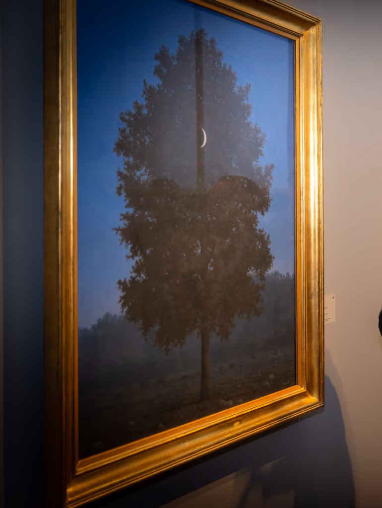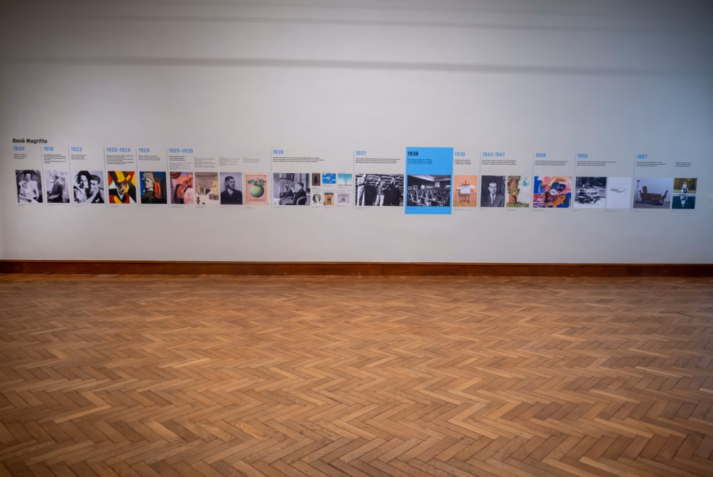 De lezing “ La ligne de Vie” is de rode draad door de tentoonstelling. Alleen de tekst was bewaard maar met wat AI en bestaande stemfragmenten van Magritte, die men van interviews kon recupereren komt La Ligne de Vie terug tot leven samen met originele projecties. Magritte was Franssprekend en het surrealisme was meer een Parijs-Brussel fenomeen en dus was Antwerpen een uitdaging. De belangrijkste citaten zijn ook vertaald in de tentoonstelling. Bekende stukken verbinden met minder gekende oeuvres. Het is de meest persoonlijke tentoonstelling ooit, je kijkt naar Magritte zoals hij zelf naar zijn werk keek.