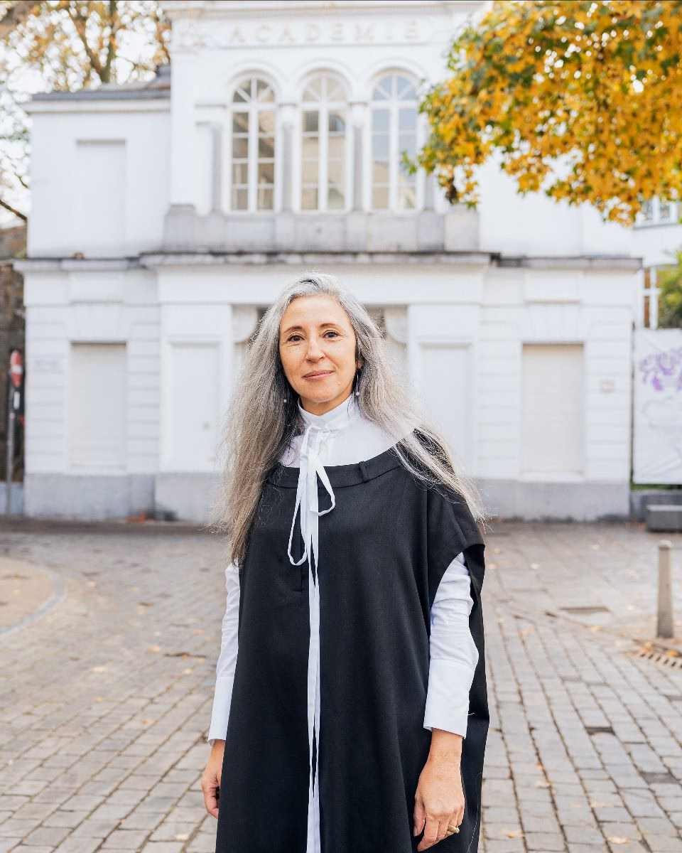 Nedda El-Asmar: “Voor de buitwenwereld is de Academie van Antwerpen vooral herkenbaar aan het iconische poortgebouw en de historische tuin waar studenten en docenten elkaar ontmoeten. Laten we verder bouwen aan de Academie als een autonome, veilige plaats waar verschillende creatieve praktijken samenkomen en waar mensen verbindend met elkaar omgaan. Deze instelling is dus een plek én een uitnodiging waar we allemaal eerst en vooral elkaars artistieke praktijken en persoonlijkheden trachten te begrijpen, een unieke plek waar we het kritisch denken cultiveren over wat ‘maken’ en ‘denken’ nog kunnen betekenen in deze zeer snel veranderende wereld.