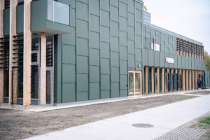 Het complex omvat acht moderne kleedkamers, een grote cafetaria en ruime scoutslokalen en voldoet aan de hoogste normen op het vlak van toegankelijkheid en energie-efficiëntie.