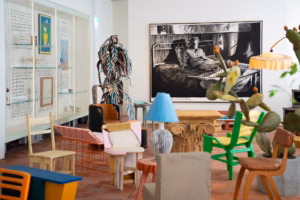 Abby Kortrijk is een eigenzinnig, speels en laagdrempelig museum voor beeldende kunst, dat met zijn innovatieve concept ‘Stadsliving’ bevraagt wat een museum vandaag kan en moet zijn, voor wie en door wie. Met ‘de Stadsliving’ introduceert Abby een vernieuwend museaal concept: een laagdrempelig open huis dat als een experimentele buitenschil rond de klassieke museumzalen is gedrapeerd en fungeert als een third space in het hart van de stad, waar bezoekers, makers en lokale gemeenschappen samenkomen, programma delen en participatieve projecten ontwikkelen. Het museum slaat bruggen tussen kunst, erfgoed en design, en herdefinieert het begrip eigenaarschap en presentatie. Elke twee jaar wordt de Stadsliving door een andere kunstenaar ingericht; in de eerste editie creëerde Rinus Vandevelde meubels, kamerplanten en lampjes uit karton, hout en verf, als knipoog naar Kunstwerkstede De Coene (1888-1977).