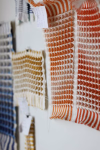 Het project toont hoe ambacht en digitale technologie elkaar kunnen versterken. Waar het dobbyweefgetouw met schachtmechaniek beperkingen kent in patroonmogelijkheden, gebruik ik digitale ontwerptools om juist binnen die grenzen nieuwe mogelijkheden te verkennen. Door het ambachtelijke en digitale proces te combineren, ontstaan resultaten die voorheen buiten bereik lagen.’ – Esther Van Schuylenbergh