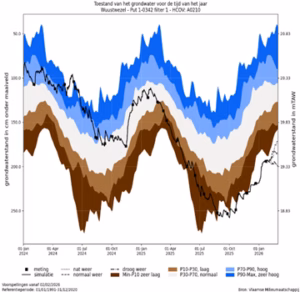 Hoewel het einde van de winter nadert, is het watersysteem in de provincie Antwerpen nog niet hersteld van de langdurige droogte in 2025. Tijdens het provinciaal droogteoverleg van 11 februari 2026 stelden de waterbeheerders vast dat vooral de ondiepe grondwaterstanden uitzonderlijk laag zijn voor de tijd van het jaar. Op verschillende meetplaatsen – vooral in het noorden en westen van de provincie – worden historisch lage winterpeilen geregistreerd.
