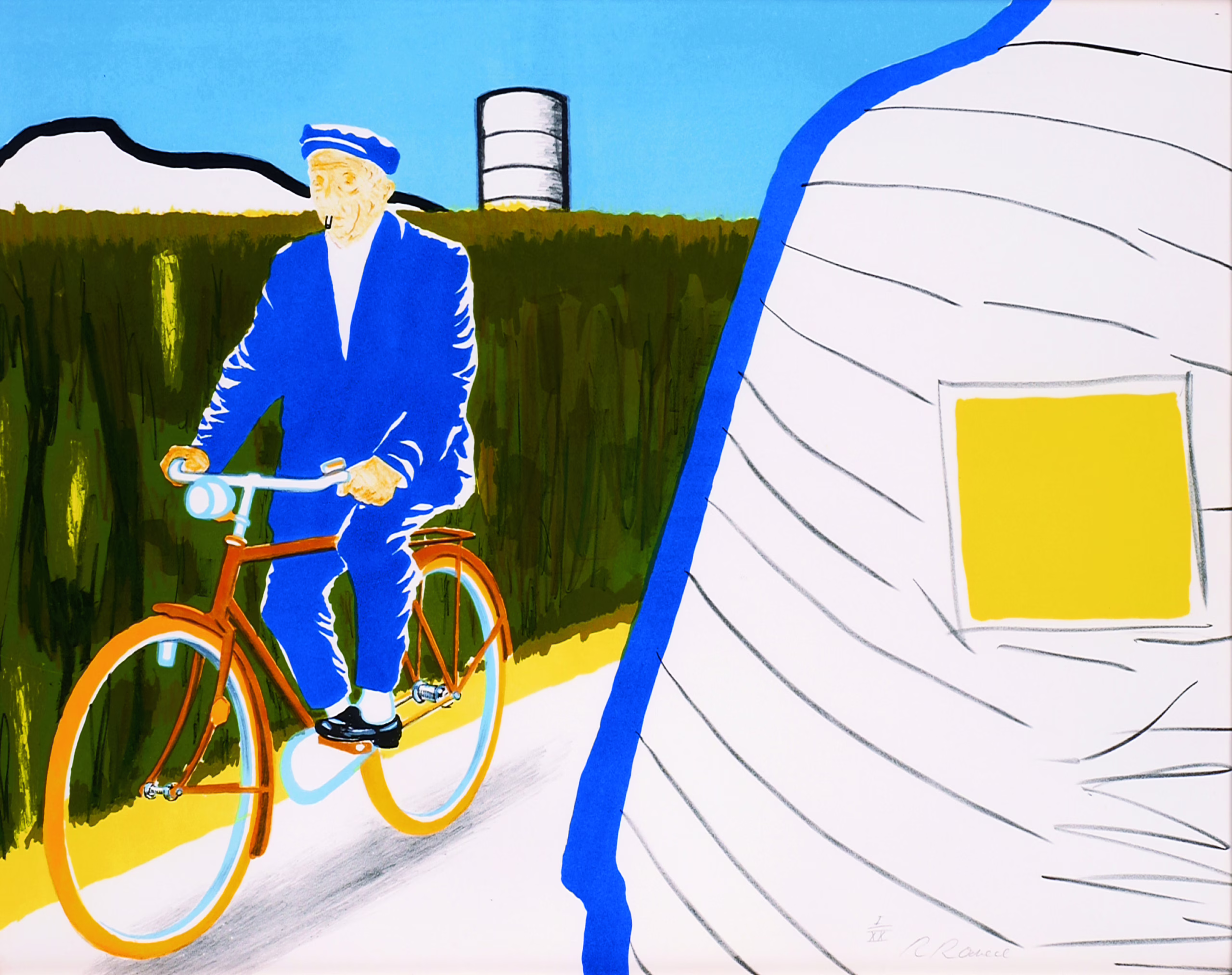Roger Raveel (1921 – 2013) was een Vlaams schilder, keramist en objectkunstenaar. Hij werd geboren en werkte zijn hele leven in Machelen-aan-de-Leie, dicht bij Gent. Raveel geldt als één van de belangrijkste Belgische kunstenaars na de Tweede Wereldoorlog. Zijn oeuvre ontsnapt aan strikte kunsthistorische hokjes: het is tegelijk abstract en figuratief, eigentijds en tijdloos. Hij haalde inspiratie uit het alledaagse: een fietskar in de tuin, een koffiepot op tafel, een boer op het veld, … en vertaalde die naar een universele beeldtaal. Het oeuvre van Raveel heeft de tand des tijds goed doorstaan en en heeft zich internationaal weten te profileren tegenover kunstenaars uit de 2e helft van de 20e eeuw.