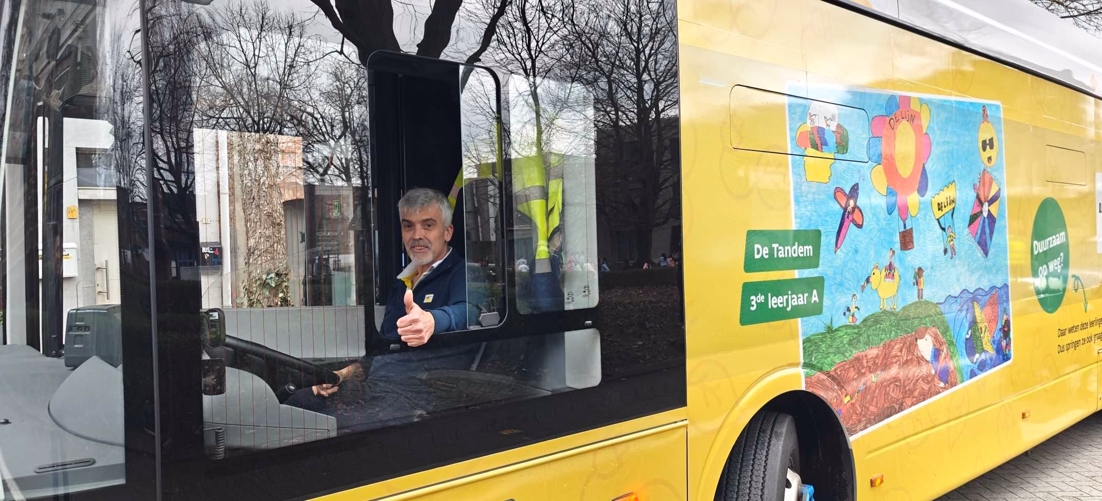 De Lijn organiseerde in samenwerking met scholen rond de stelplaats Mortsel een tekenwedstrijd voor lagereschoolkinderen rond het thema duurzame mobiliteit. De winnende tekeningen prijken nu op één van de elektrische bussen — een rijdend eerbetoon aan jeugdige creativiteit en groene toekomstvisies.